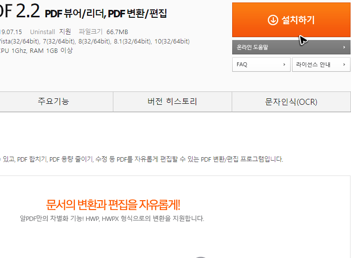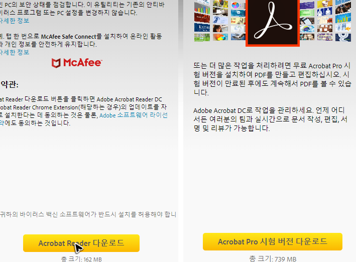 그리고 어도비 리더의 다운로드를 해보시면 아시겠지만, 문서 실행은 가능해도 문서 편집을 할 수는 없어요. 혹시 편집을 해야 할 상황이라면 프로 버전을 별도로 구해서 받아야 합니다.