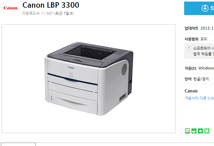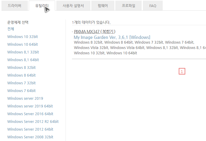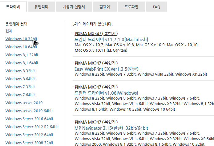 조금 더 정확하게 얘기를 하자면 운영체제의 선택과 필요한 항목을 찾은 뒤, 해당 항목 우측에 있는 버튼을 클릭하면 됩니다. 그럼 선택한 항목에서 캐논 프린터 드라이버의 다운로드를 할 수 있을 거예요.