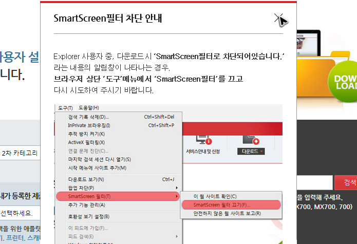 세부 페이지에서는 브라우저 설정에 대한 내용부터 나오는데, 안내되고 있는 내용에 따라 브라우저의 설정을 변경해주세요. 그래야 캐논 프린터 드라이버의 다운로드를 하는데 오류가 생기지 않습니다.