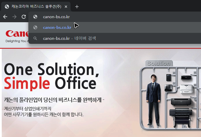 자료실을 통해서 구하는 것도 가능하지만, 그래도 공식 루트에서 파일을 구하는 것이 가장 안전해요. 고로 우리가 찾아가야 할 주는 다른 곳도 아닌 [canon-bs.co.kr]입니다. 공식 홈페이지를 찾아간 뒤에는 캐논 프린터 드라이버의 다운로드를 할 수 있는 세부 페이지로 이동을 해주세요.
