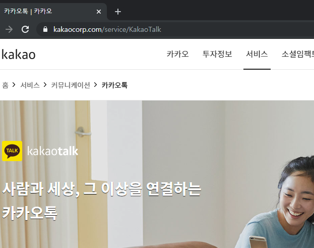 컴퓨터 프로그램은 다양한 루트를 통해서 받을 수 있지만, 그래도 공식 루트에서 받는 것이 제일 안전해요. 그래서 pc 카카오톡의 설치 방법이 필요할 땐 브라우저 주소창에 [kakaocorp.com/service/KakaoTalk]를 적는 것이 깔끔합니다.