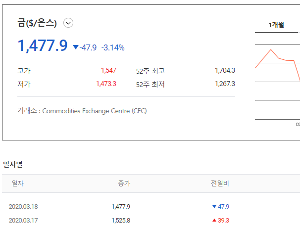 오늘 금값시세 1돈 향후 전망 : 요즘 세계적으로 증시가 무너지고 있죠? 몇몇 업종은 방어를 잘 하고 있지만 대부분 업종의 지수가 무너지고 있는 중입니다.