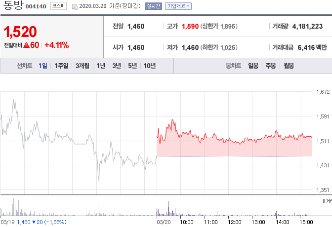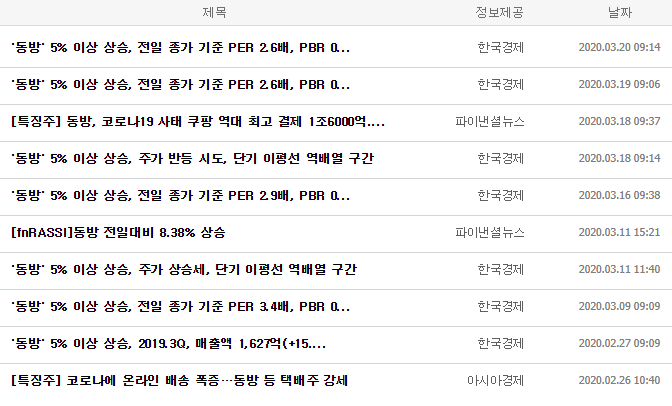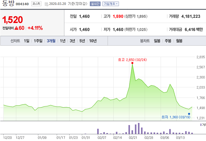동방 주가 흐름 전망 : 쿠팡과 같은 곳에서 온라인 배송량이 폭증한다는 소식이 전해졌을 때 함께 오르기 시작했고, 지금은 그 상승폭을 모두 반납한 상황이죠?