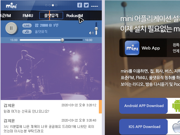 개인적으로 앱은 통합버전이 더 좋은데 컴퓨터에서 mbc 라디오를 들을 땐 그냥 공식 지원되는 툴을 선택하는 것이 더 좋다고 느껴지더군요.