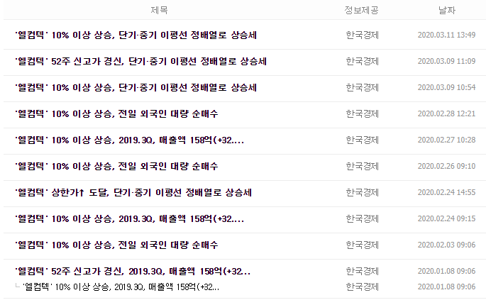 하지만 여전히 변동성은 크기 때문에 앞으로 이 종목이 상승전환을 할 수 있을지에 대해 알아보시는 분들은 오히려 늘었습니다. 그렇다면 엘컴텍의 주가는 오를 수 있을까요? 참고하실 수 있는 정보를 아래 엮었으니, 하단을 확인해보시기 바랍니다.