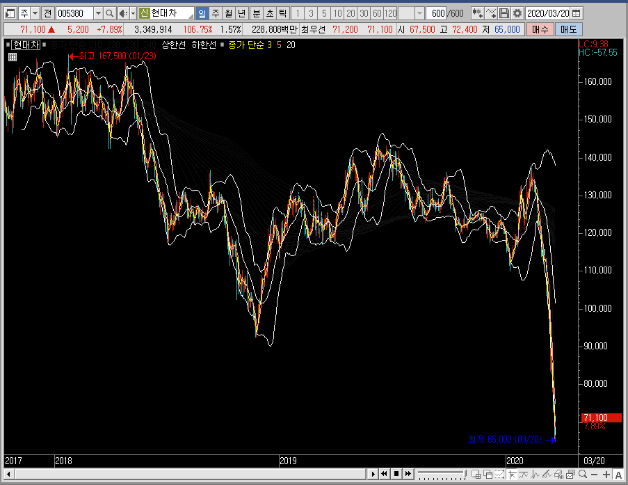 그래서 저는 현대차의 주가에 관심을 두고는 있지만 바로 진입할 생각은 없습니다. 며칠이 걸릴 수도 있고 몇 개월이 걸릴 수도 있지만 저는 떨어지는 그림이 진정되고 바닥을 만드는 모습을 보일 때 다시 분석을 할 것입니다.