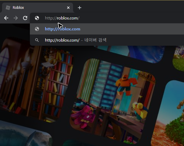 꼭꼭 숨겨져서 아는 사람들만 게임을 다운받을 수 있는 것이 아니기 때문에 검색하면 빠르게 사이트를 찾아갈 수 있어요. 하지만 검색은 귀찮아요. 그러니 우리는 [roblox.com]를 주소창에 입력해서 roblox의 바로가기와 pc 설치 화면으로 이동해요.