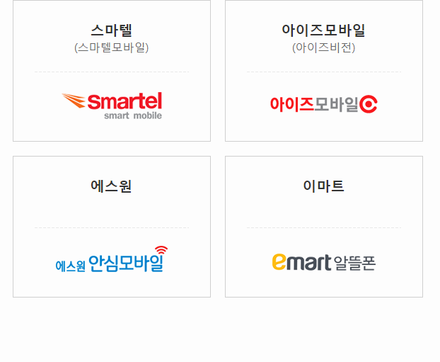 버튼을 클릭하면 알뜰 회선으로 등록할 수 있는 회사 종류가 나오는데, 각각을 클릭하면 세부적인 알뜰 skt 요금제를 확인해보실 수 있을 거예요.