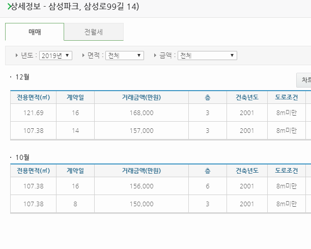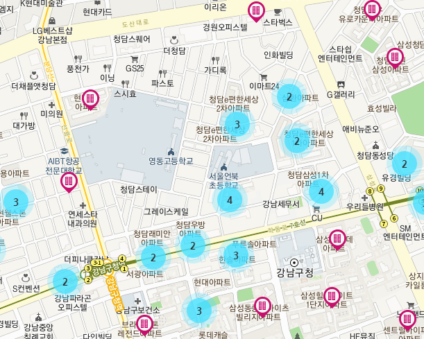 위치를 지정한 뒤에는 오른쪽 지도에서 오른쪽에서 지도 위치가 로딩되고, 몇 가지 숫자들이 보일 거예요. 이 숫자를 클릭하고 항목을 한 번 더 누르면 부동산 실거래가와 관련된 정보들을 확인할 수 있을 것입니다. 전국 어디나 확인할 수 있어요.