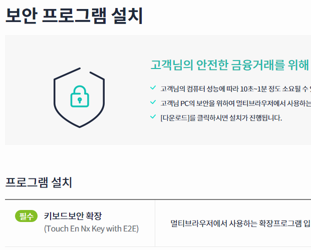 메뉴를 누르면 금융 업무를 볼 수 있는 것이 아니라 keb하나은행 인터넷으로 뱅킹하는 곳에서 보안 모듈을 요구할 거예요. 귀찮은 부분이기는 하지만 온라인으로 금융 업무를 보려면 꼭 필요한 부분이니 설치를 해주세요.
