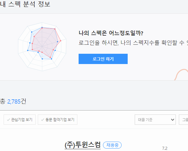 그리고 다른 취업 포털과 마찬가지로 잡코리아도 그냥 일자리만 둘러볼 수 있는 것이 아니라 AI면접을 통해서 면접 실력을 키우는데 도움을 받을 수 있고, 취업 시장과 관련된 소식들이 정리된 공간이 있으며, 공채 메뉴를 눌러서 자소서 작성 요령이나 기업 합격 스펙 등의 부수적인 정보들도 살펴볼 수 있습니다.