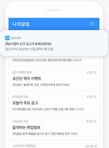 그리고 다른 취업 포털과 마찬가지로 잡코리아도 그냥 일자리만 둘러볼 수 있는 것이 아니라 AI면접을 통해서 면접 실력을 키우는데 도움을 받을 수 있고, 취업 시장과 관련된 소식들이 정리된 공간이 있으며, 공채 메뉴를 눌러서 자소서 작성 요령이나 기업 합격 스펙 등의 부수적인 정보들도 살펴볼 수 있습니다.