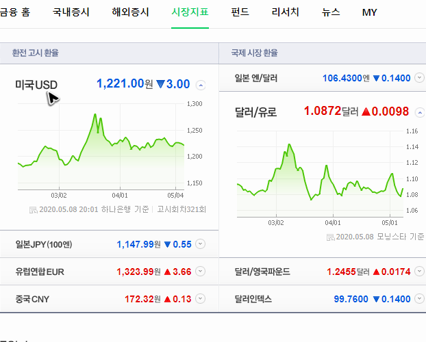 혹시 환전을 하는 것이 아니라 저처럼 투자 지표로 활용하거나 수단으로 활용하기 위해 외환은행의 환율조회를 하시는 것이라면 네이버 금융의 정보도 꼭 한 번쯤 확인해보는 것을 권장합니다.