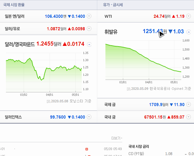 하지만 네이버 금융은 외환은행처럼 1달러 가격만 보여주는 것이 아니라 다양한 시장 지표와 이슈들을 함께 보여주기 때문에 여러 지표와 얽힌 미국 USD의 추이를 예상하는데 조금이나마 더 큰 도움이 될 수 있을 것입니다