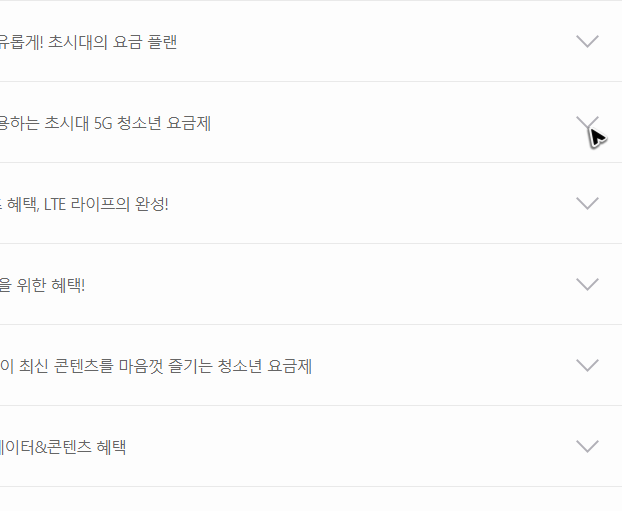 그룹을 선택하면 해당하는 skt의 요금제가 나열될 거예요. 그럼 데이터 사용량이나 기타 혜택들을 간략하게 살펴보고, 마음에 드는 항목이 있다면 자세히 보기 버튼을 누르면 됩니다.
