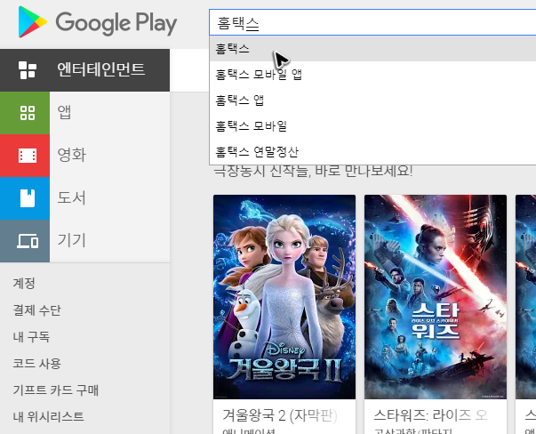 플레이 스토어를 열고 홈택스를 검색해보면 의외로 여러 종류의 앱이 나와서 현금영수증 사용내역의 조회를 하는 것이 갑자기 어렵게 느껴질 수 있어요. 그냥 아래 그림과 같은 앱을 찾아서 준비하시면 됩니다.