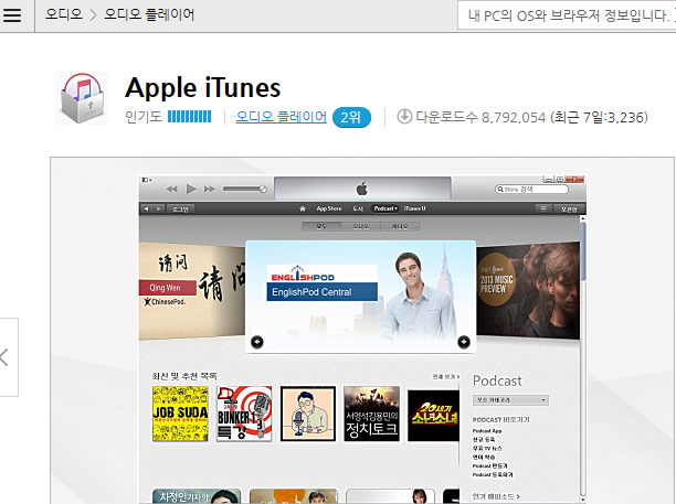 저는 윈도우 사용자라 메인 화면에 있는 버튼을 바로 눌렀습니다. 그랬더니 이번에도 아이튠즈의 다운로드를 하는 버튼이 보이는군요. 역시나 클릭하면 됩니다. 하단에 있는 내용도 슬쩍 보면 좋을 것 같아요.