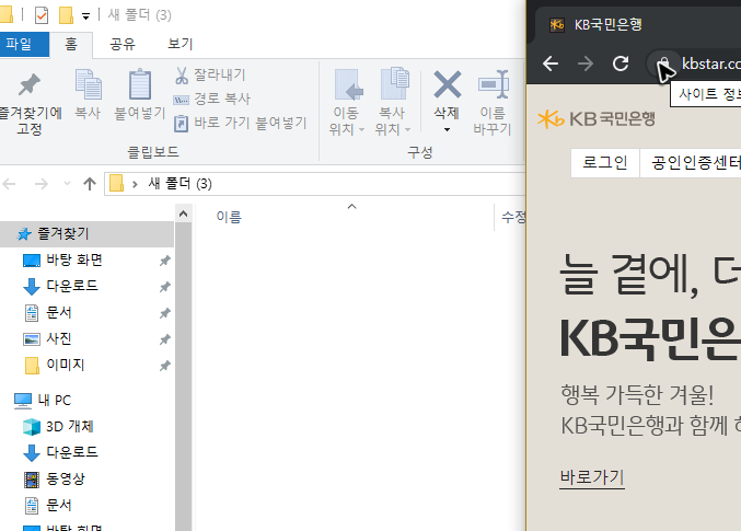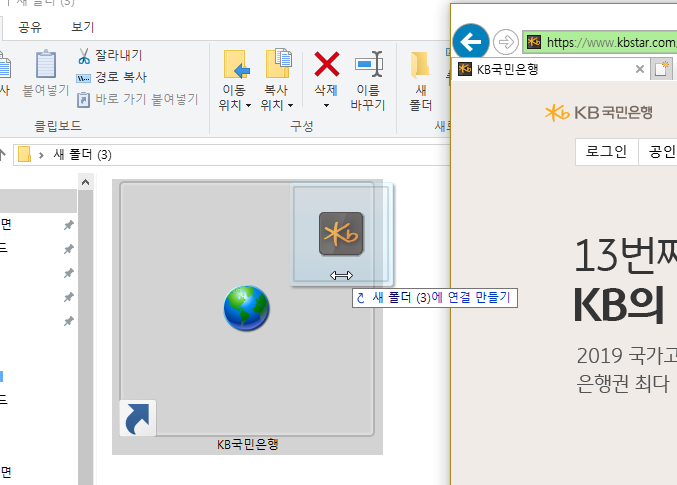 어떤 방법이 됐든, 페이지를 띄운 뒤에는 바탕화면에 폴더 하나를 만들어 주세요. 혹시 국민은행 개인인터넷뱅킹의 바로가기 버튼을 배경에 놔두고 쓰신다면 폴더는 따로 생성하지 않아도 괜찮습니다.