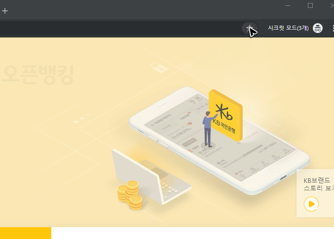 이제 국민은행 개인인터넷뱅킹의 바로가기를 사용하면 됩니다. 다만, 항상 새로운 브라우저가 열린다는 부분이 오히려 귀찮게 느껴질 수도 있을 거예요. 이럴 땐 북마크 활용을 해주세요.