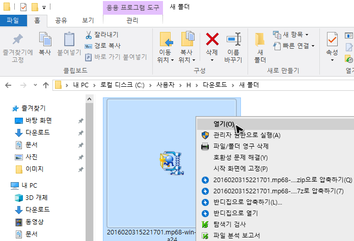 여담으로 제가 올려둔 그림을 보면 실행했을 때 바로 준비하는 형태의 파일이라는 것을 알 수 있는데, 저와는 달리 압축 형태로 받아지는 경우도 있어요.