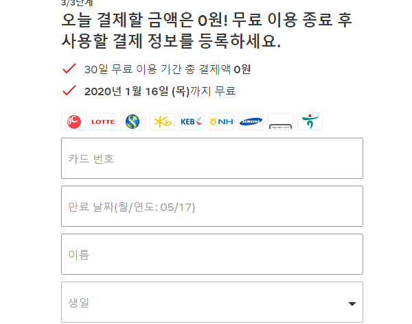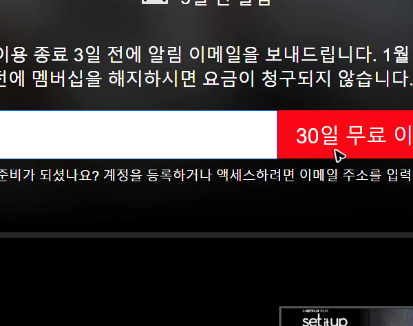그리고 넷플릭스의 사용과 관련해서 기억해두셔야 할 부분이 하나 더 있어요. 최초 한 달은 부담 없이 사용할 수 있다는 것입니다. 한 달이 끝나기 전에 알림도 오니 미리 등록을 할 필요는 없어요. 일단 한 달부터 사용해주세요.