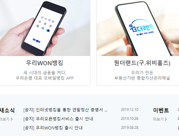 우리은행 인터넷뱅킹 홈페이지 바로가기