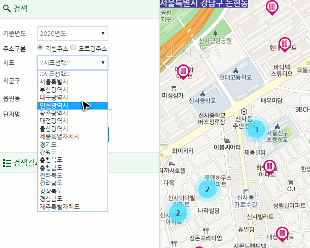 이제 공시지가 조회하는 사이트에서 확인하려는 아파트나 토지의 위치를 정확하게 지정해주면서 검색을 해주어야 해요. 확인하고 싶은 곳이 이미 마음 속에 있으실 테니, 따로 위치에 대한 부분은 얘기하지 않아도 괜찮겠죠?