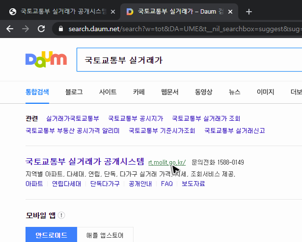 국토교통부를 통해서 실거래가 조회를 하는 방법