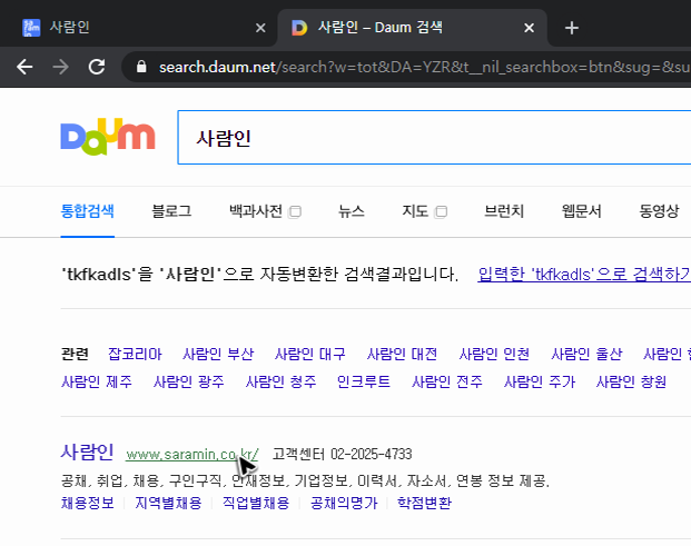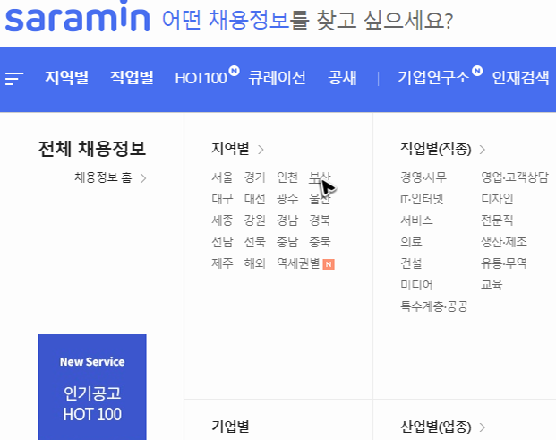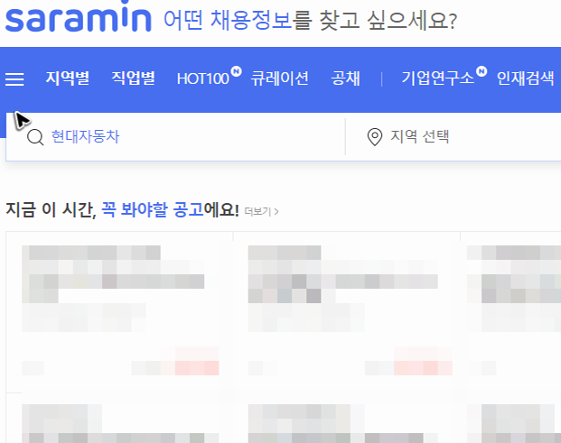 여러 종류의 취업 포털이 있다고 해도 제목에 사람인을 적었으니, 해당 사이트를 먼저 얘기하는 것이 순서겠죠? 특별히 방법을 아는 사람만 찾아갈 수 있는 비밀스러운 사이트가 아닙니다. 포털에서 검색하면 바로 방문하실 수 있어요. 다만, 검색은 귀찮을 수 있으니, 브라우저에 [saramin.co.kr]를 입력해서 사람인의 부산에서 구인구직을 확인해주세요. 물론 괜찮으시다면 포털에서 검색해서 방문하셔도 됩니다.